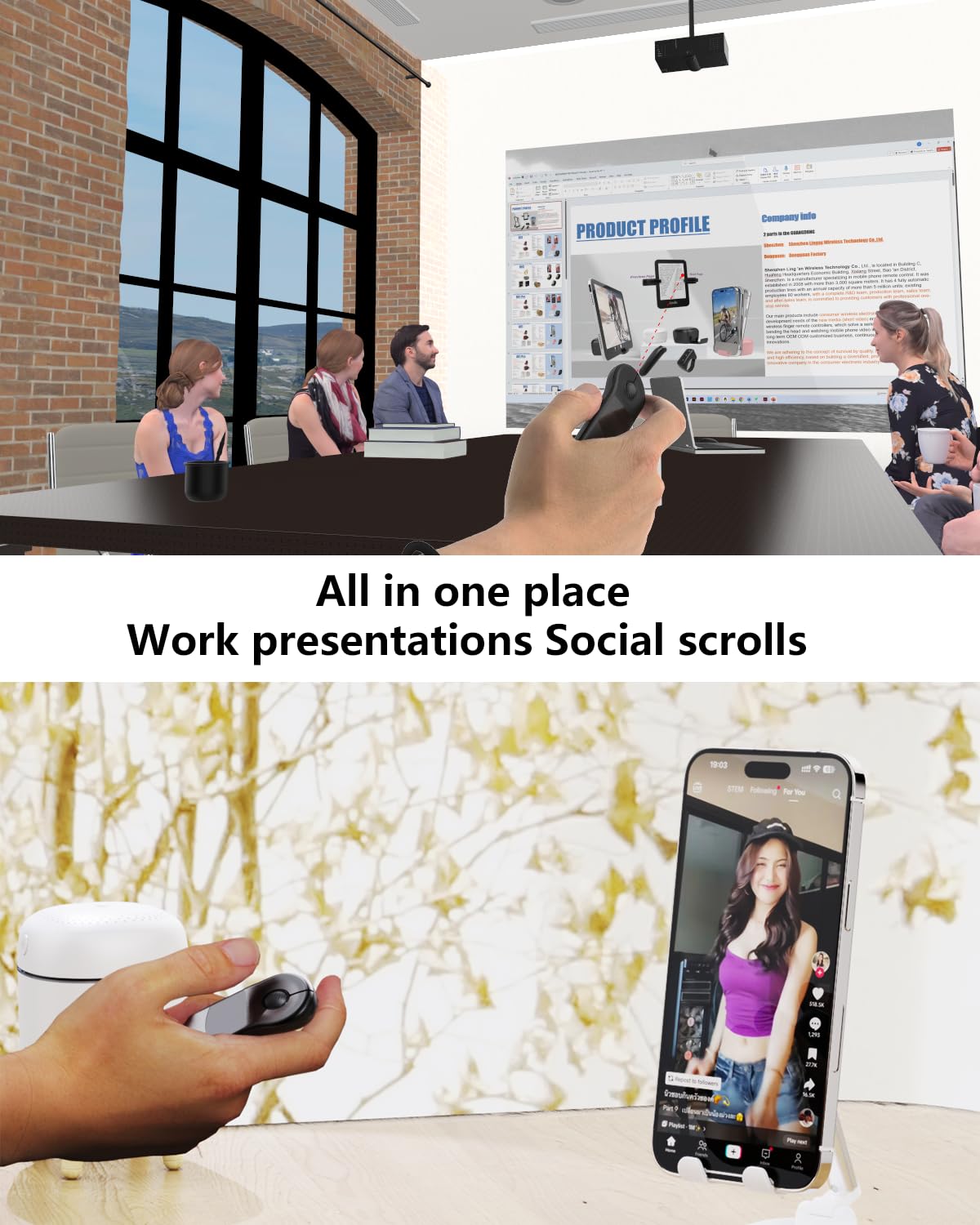 - [Multiple application scenarios] Your ultimate presentation tool: From dynamic pointer control and digital whiteboarding to wireless photography and document navigation - one device handles all professional needs.